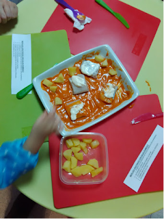 A partir de este momento todo puede ser realizado por los peques con la precaución de que tanto la Romesco como las patatas no quemen.